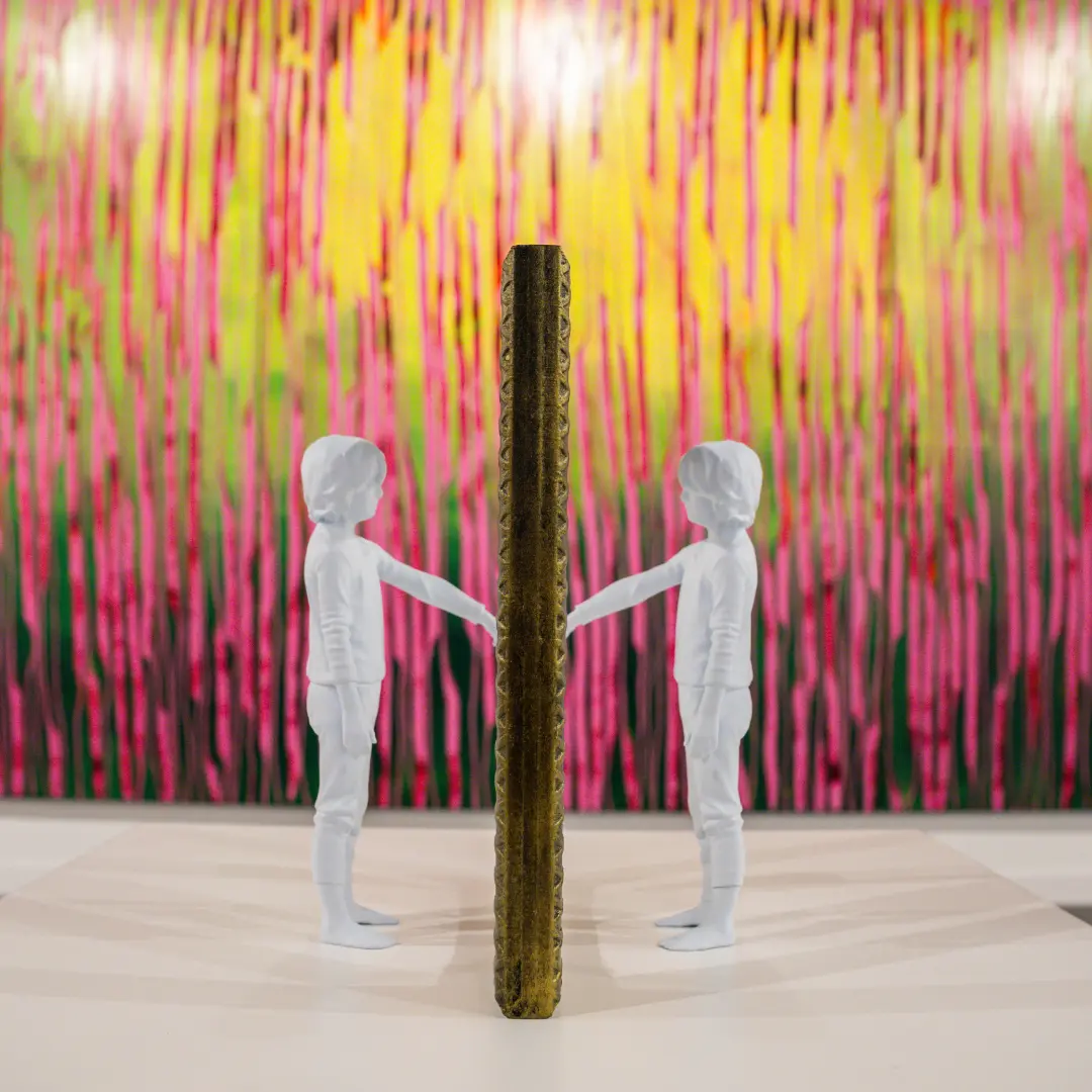 Ebru Döşekçi, geometrik soyutlamalarını mekânsal deneyimlere dönüştürerek, duyguyu yapı ve ritme taşıyan duyusal kompozisyonlar ortaya koyuyor. Daniel Firman ve Thomas Schönauer’in heykelleri ise galerinin seçkisine kavramsal derinlik ve malzeme deneyselliği katıyor. Bu yıl galerinin ilk kez sergileyeceği Serkan Özkaya’nın yapıtları ise kavramsal ile malzeme arasındaki diyaloğu genişletiyor.
